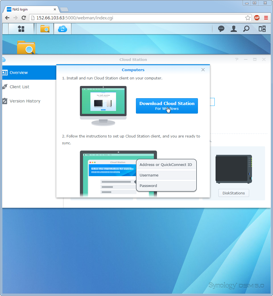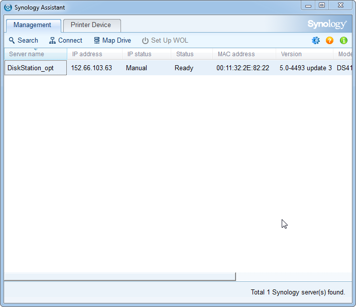 létrehozásához szükséges program(Synology Assistant) rögtön letölthető a NAS-ról,